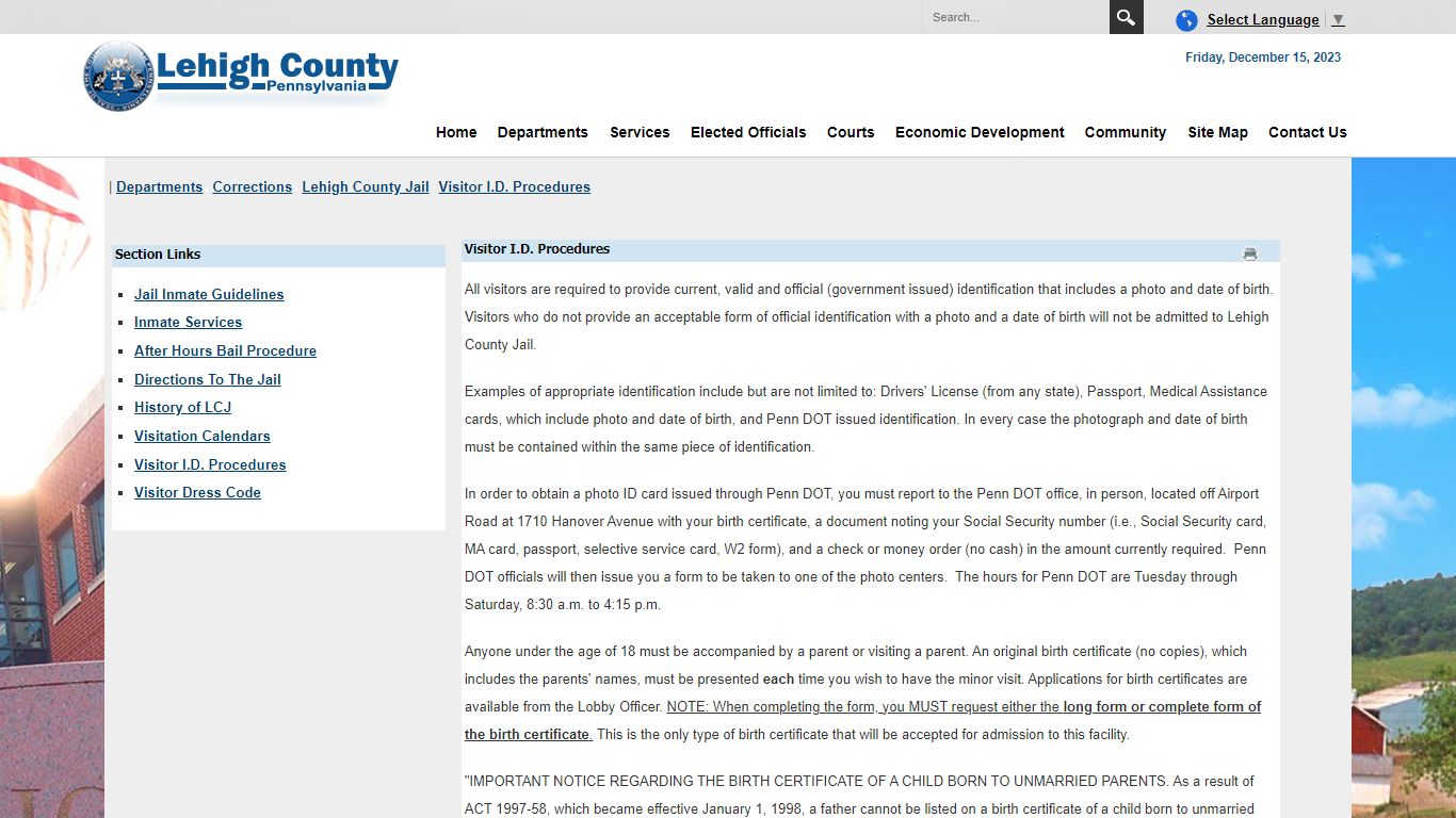 https://www.lehighcounty.org/Departments/Corrections/Lehigh-County-Jail/Visitor-ID-Procedures Visitor I.D. Procedures - Lehigh County, Pennsylvania